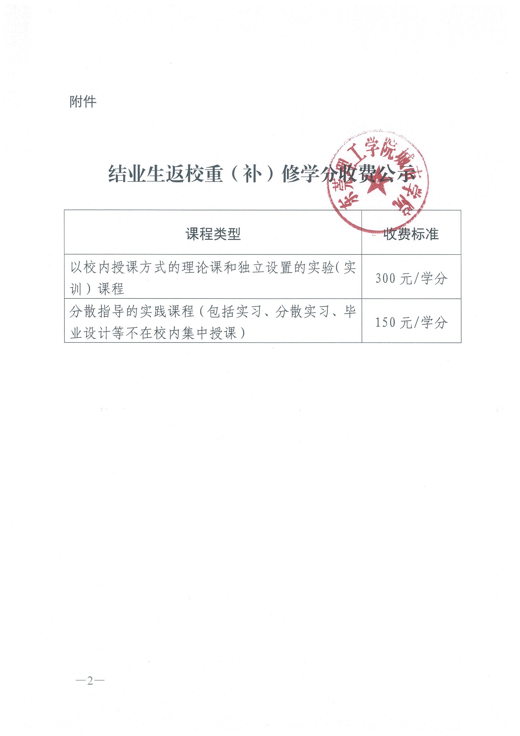 关于结业生返校重(补)修学分收费标准的公示