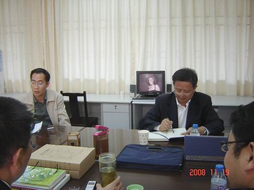 2008年11月19日中午,以教务处副处长谭汪洋为组长的2008—2009学年第一学期期中教学抽查专家组到财经系检查指导工作。 财经系高香林主任对检查专家组莅临财经系指导教学工作表示衷心的感