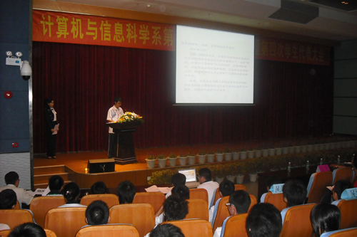 10月12日,计信系在学术报告厅举行了第二次团员代表大会暨第四次学生代表大会。系主任牛熠博士、党总支书记廉玉忠教授、副书记葛卫清副教授等出席了会议。 会上,党总支书记廉玉忠教授上台对这次会议作了高度的评价,并对“两会”
