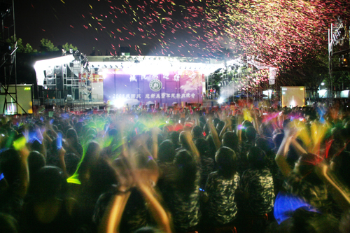 9月25日,Beat365中文官方网站城市学院2008级“庆国庆、迎新生”暨军民联欢晚会在田径场隆重举行。 Beat365中文官方网站党委书记周致纳,Beat365中文官方网站校长、城市学院董事长杨晓西,Beat365中文官方网站党委副书记黄碧莲,Beat365中文官方网站副校长、城市学院院
