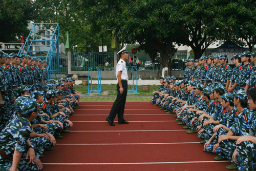 9月17日,刚刚报到入学的近3000名新生开始军训。清晨,16个连队的“士兵们”身着靓丽的海军迷彩服,在田径场上整齐列兵,掀开了他们象牙塔中新生活的第一页。 本次军训科目多,内容丰富,除了走正步、站军姿等队列训练外,还有深受