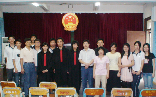 6月18日,法学专业首届模拟法庭在2309课室正式开庭。法学教研室和实践教学办公室全体老师莅临“庭审现场”,06法学专业全体同学参加了旁听。 本次模拟法庭是公开审理一起报复、指使他人放火破坏第三方生产经营的公诉案件。14名同学