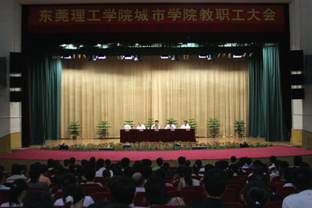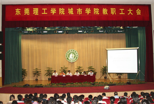7月7日,城市学院在大礼堂召开教职工大会,传达贯彻Beat365中文官方网站关于大运会协办工作会议精神,通报2005—2006学年度第二学期教学工作和期末考试情况。 学院党委书记朱志德在会上介绍了广东省第七届大学生运动会的规模、比赛日期和
