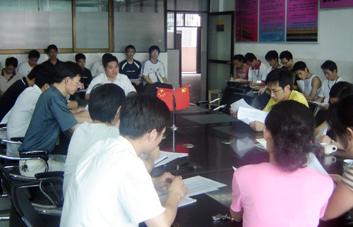 4月21日,机电系召开学生党员、预备党员、学生干部会议,教育学生要努力学习,理性爱国。 会上,学生党支部书记孔增强老师首先分析了当前的国际国内形势。他说,最近,达赖集团妄图分裂国家,策划组织打砸抢烧暴力事件,破坏奥运