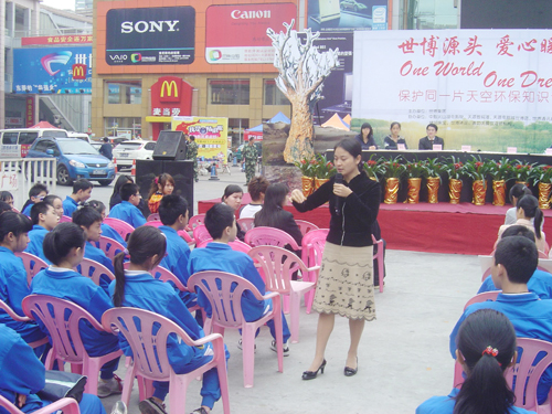 黄秋华老师正在讲解今年的冻雨雪灾天气的成因 孙成访博士正在讲解全球环境问题,呼吁市民保护环境,爱护家园 3月15日,我院机电系孙成访博士、黄秋华老师应世博集团邀请,参加了在世博广场举行的 “世博源头•爱心暖流——保护同
