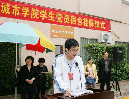 3月18日,学院在学生党员活动室前坪举行学生党员宿舍挂牌仪式。学院党委副书记朱冰,党委委员、学院办公室主任王玉,团委书记丘永辉,各系部党总支副书记和220名学生党员代表参加了仪式。仪式由王玉主任主持。 仪式上,朱