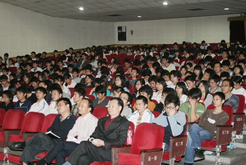 3月13日,学院在大礼堂召开2005级本科生考研动员大会,副院长程发良教授作动员报告,教务处处长邓成良教授主持会议。05级考研辅导班负责人黄乾辉副教授、前两届考研班负责人周巍老师在会上发言,共有一千多名学生参加。 程院长在动