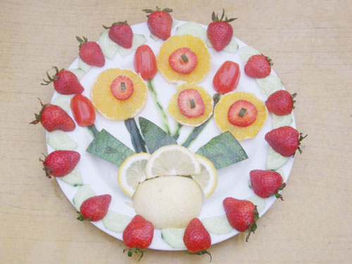 香艳的苹果,鲜美的草莓,水灵的西瓜……再配上个性张扬的名字《心花怒放》、《丰收季节》、《欢乐08》,真让人胃口大开。在3月17日院学生会举办的水果拼盘创作大赛上,57支美女同学代表队创作的水果拼盘被同学们“一扫而光”。