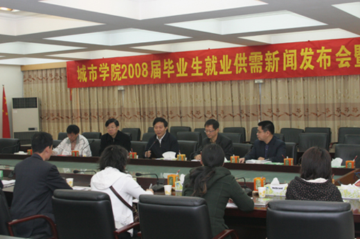2月29日,学院在315 会议室召开2008届毕业生就业供需新闻发布会暨媒体记者答谢会。东莞电视台、东莞阳光网、东莞日报、广州日报、南方都市报、南方日报、文化周末7家媒体的12名记者应邀与会。 院长安少华教授、副院长张林博士到会场与