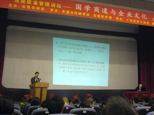 2月29日,管理系学生会和人资协会部分成员在吴春庚老师的带领下,到东莞市科学馆参加由东莞市科学技术协会主办、东莞机械工业质量管理协会和市科学馆联合举办的东莞质量讲坛《国学商道与企业文化》讲座。 清华大学特聘教授温舟
