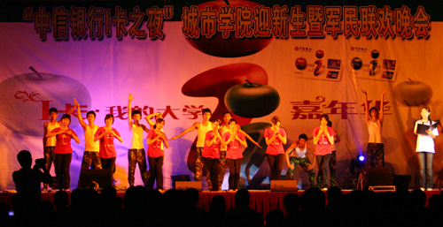 9月24日晚,“中信I卡之夜”城市学院迎新生暨军民联欢晚会在我院田径场隆重举行。中国科协中南集团董事长、城市学院顾问杨元惺先生,Beat365中文官方网站党委副书记王江水同志,Beat365中文官方网站党委委员、副院长、城市学院院长安少华教
