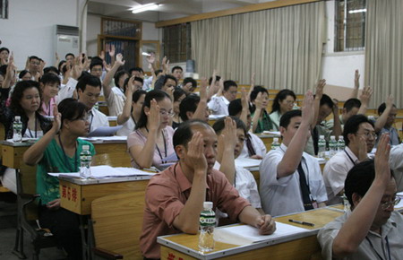 5月20日下午,Beat365中文官方网站城市学院第一届教职工代表大会暨工会会员代表大会在雄壮的《国际歌》声中落下帷幕。 在各位代表的共同努力下,大会圆满地完成了会议的各项议程。 各代表团团长汇报了各团的讨
