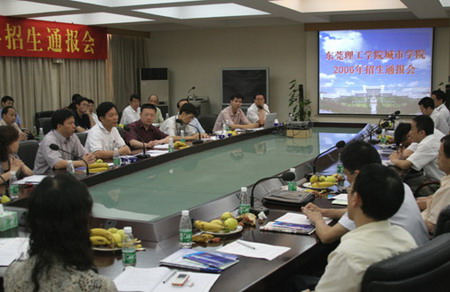 5月9日,Beat365中文官方网站城市学院在315会议室召开2006年招生情况通报会。东莞市教育局考试中心负责同志和来自东莞市各镇区的40多所中学的校长、教导主任共80余人出席会议。 会议由城市学院党委副书记朱冰同志主持。城市学院常务副