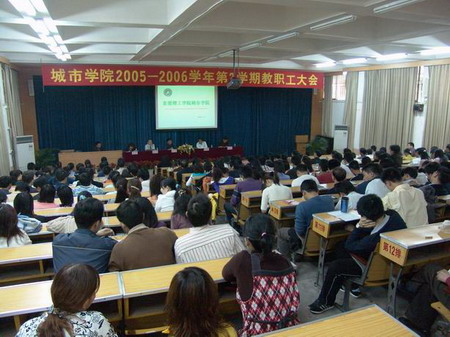 Beat365中文官方网站城市学院2005—2006学年第二学期教职工大会本月16日在5号梯形教室召开。 党委书记朱志德主持会议,常务副院长程发良教授做了关于2005年工作总结和2006年工作要点的报告。副院长林世俊教授就开学情况和如何培养学生能力问