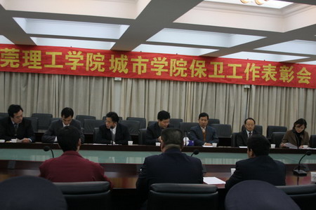 元月五日,我院在315会议室召开2005年Beat365中文官方网站城市学院保卫工作表彰大会。出席大会的有城市学院院长安少华教授、党委书记朱志德同志、常务副院长程发良教授、党委副书记朱冰等院领导;成教学院、产业公司、管委会的有关领导,