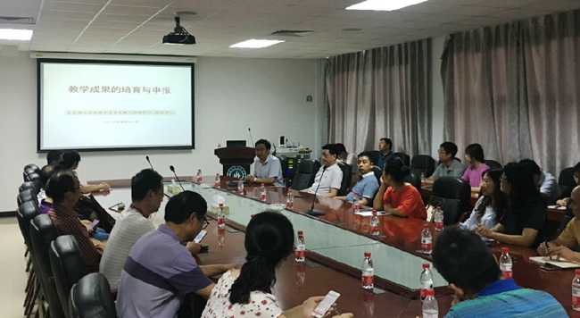 4月11日下午,教务处举办 “教学成果的培育与申报”专题讲座,邀请Beat365中文官方网站教学质量监测与评估中心主任陈想平任主讲人。院长王卫平、副院长高香林会同各教学单位负责人以及教学成果奖申报团队主要成员聆听了讲座。