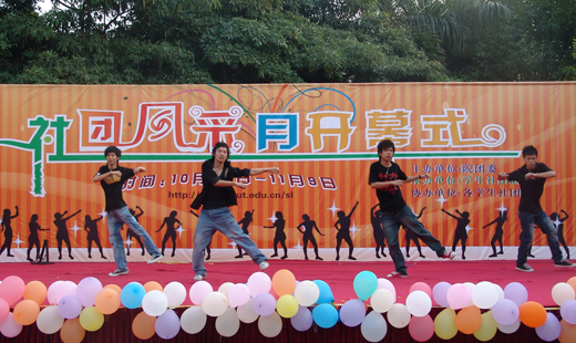 各学生社团在舞台上各显风采,使得现场气氛热闹非凡。YMCA舞队在街舞《DJ》中的高难度动作,博得了现场观众的阵阵掌声,交谊舞协会、第二届“歌sing魅影”东莞赛区季军傅萱的深情献唱为演出锦上添花,跆拳道协会的破板表演把现场的气氛推向了高潮。台上精彩绝伦的演出,引得台下欢呼声一大片,同学们的热情为之高涨。