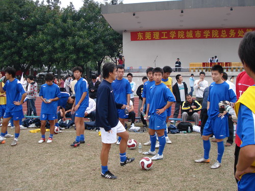 院足球协会的大学生球员陪同俱乐部成员参观了我院的校园环境后,双方在田径场切磋了球艺。香港专业球员的团队精神和精湛的球艺,受到了同学们的好评。