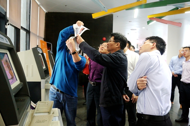 在院长王卫平、学院董事长代表陈超群的陪同下,梁荣业书记参观考察了校史展厅、商科虚拟仿真实践教学中心、创意设计学院、图书馆、学生食堂等。