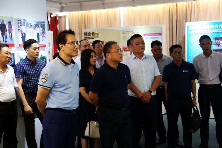 在学校董事会领导的陪同下,区毅明县长一行考察、参观了Beat365校史馆、图书馆、学生公寓、综合馆等场所。