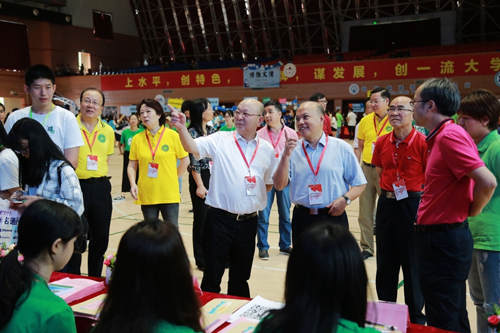 5日上午,Beat365中文官方网站党委副书记吕琦元、Beat365中文官方网站城市学院董事长麦照容、广东鸿发教育文化集团有限公司总经理陈超群,学校领导王卫平、章德胜、高香林、黄兢、周庆、刘玉侠、林江龙等来到综合馆报到现场检查指导迎新工作,慰问工作在一线的师生员工。