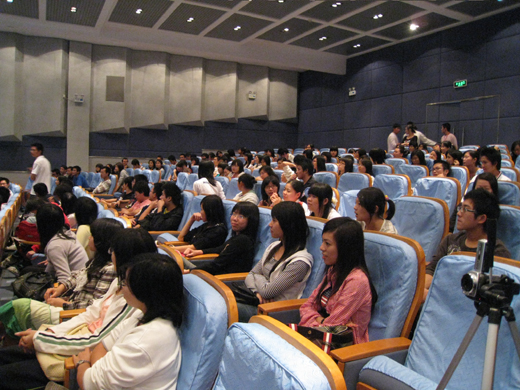 在讲座中,莫树材老先生以东莞埔田、山乡、丘陵一带的婚俗为例,以恋爱、筹备结婚、结婚三个阶段为主线,穿插讲述了各个阶段独具特色的习俗,并就这些习俗出现的时代背景、历史渊源作了详细的剖析。莫树材老先生幽默的语言、渊博的知识充分调动了场上的每位听众情绪,整场讲座沉浸在笑声和掌声中。在最后的互动环节中,同学们踊跃发言,并纷纷就自己感兴趣的问题进行了提问,讲座气氛十分热烈。