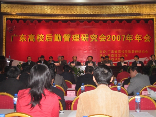 本次年会的主要议题有:成立广东省高校后勤管理行业协会可行性研究;高校后勤改革和发展方向研究;高校后勤财务管理交流;高校后勤人力资源管理与高校后勤服务业务外包准入制、监督及管理。七所高校后勤负责人在大会上介绍了他们的经验。
