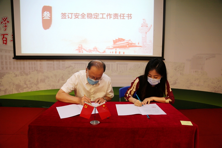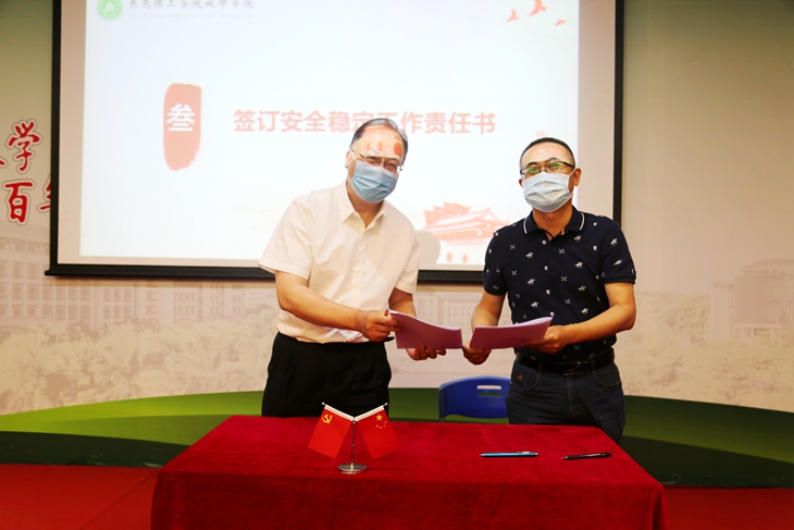 会上,章德胜书记代表学校党委与各责任单位签订了安全稳定工作责任书。