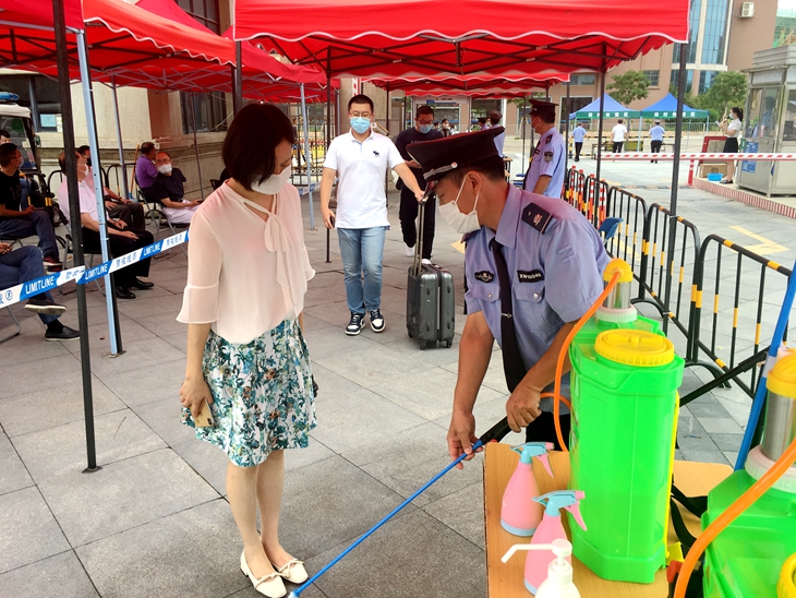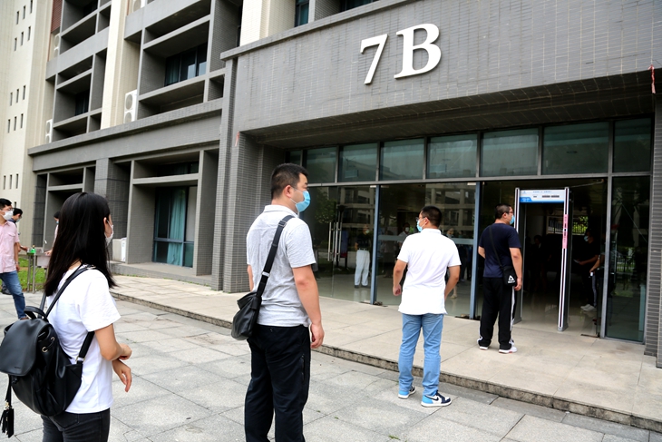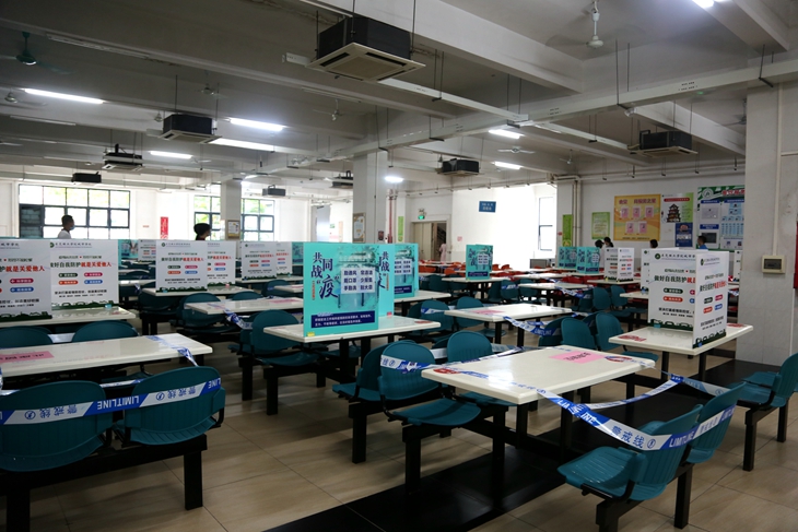 下午3点,校长王卫平宣布演练正式开始。演练包括学生入校身份确认、行李消杀、体温筛查、进入课室、食堂就餐等环节,模拟返校全过程。为应对报到中可能出现的各种情况,学校按照“进入校门发现疑似症状”、“上课期间师生身体出现异常状况”、“学生饭堂内就餐流程”等情况制定了详细的工作方案。