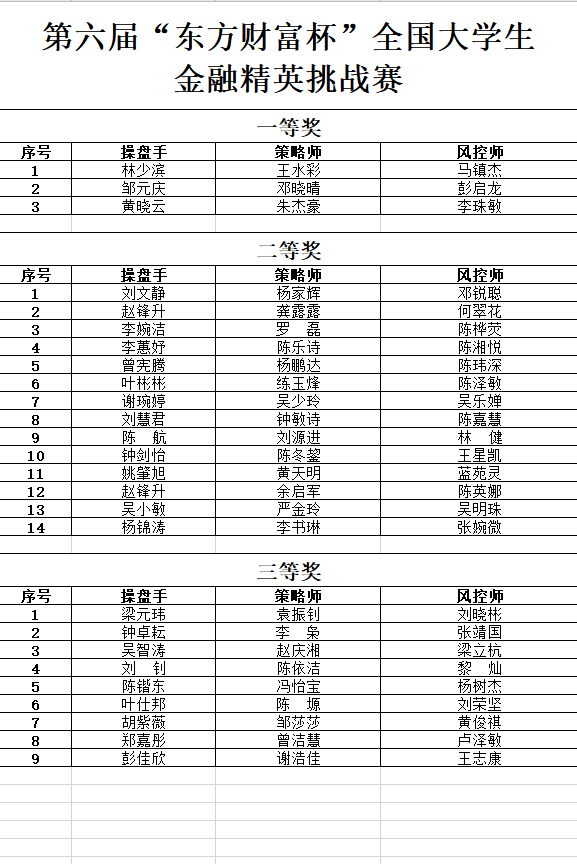 8月21日,由共青团中央青年发展部主办的第六届“东方财富杯”全国大学生金融精英挑战赛国赛圆满落幕。此次大赛,Beat365共有1111人报名参赛,经过校赛(个人赛)、省赛(团队赛)、国赛(团队赛)层层挑战,历时6个月,共计343人晋级省赛,17支队伍(每队3人)晋级国赛,最终26支队伍获奖,其中一等奖3支,二等奖14支,三等奖9支,创出Beat365历史最好成绩,在东莞各参赛高校中排名第一。