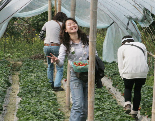 大王洲渔村四周环水,风光旖旎。阳春三月,桃花正艳,水面上一群群绿头鸭悠然自得地游水嬉戏。老师们走在田埂和乡间的小路上,呼吸新鲜的空气;或步入硕果累累的草莓种植园,亲身感受“收获”的喜悦;或踏入梦境一般的玫瑰园,当一回 “采花大盗”;或在田间地头仔细寻觅,寻找属于自己的“神秘礼物”。