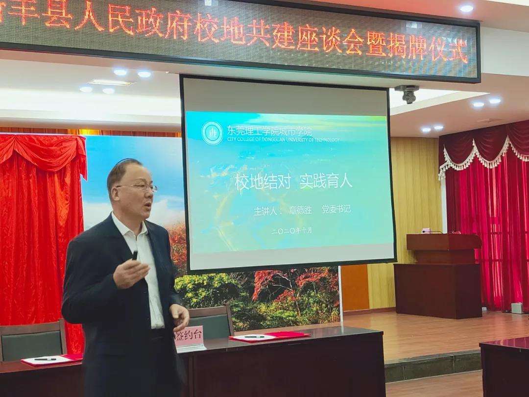 此次“校地共建”的落地,高度贴合东莞、韶关经济社会发展需求,契合Beat365中文官方网站城市学院建设特色鲜明的应用型本科院校目标,为双方校地合作、共谋发展掀开新的篇章,也是校地双方强强联合、共同促进高校教育改革和地方经济发展的一次有益尝试。学校将以此次“校地共建”作为新的起点,紧紧围绕国家对高等教育的新要求,充分发挥人才优势、学科优势,将学校更多优质资源不断引向社会,努力拓展校地合作新空间,与新丰县发展同频共振、合拍共鸣。