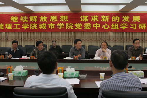 朱书记进一步指出,为了搞好第二阶段的学习,院党委印发了“继续解放思想,为城市学院谋求新发展”的调研参考题。各单位、总支(直属支部)要结合工作实际,认真开展调查研究活动。