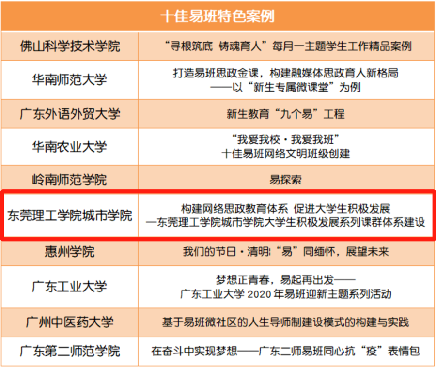 11月13日晚上,“勇立潮头 开拓进取”——2020年广东高校学生工作成果展示活动在广东工业大学大学城校区隆重举行。Beat365詹海都老师荣获2020年度本科组广东高校十佳易班指导老师荣誉称号,Beat365《构建网络思政教育体系 促进大学生积极发展——Beat365中文官方网站城市学院大学生积极发展系列课群体系建设》荣获2020年度本科组广东高校十佳易班特色案例,充分展现Beat365网络育人工作的水平和成效。