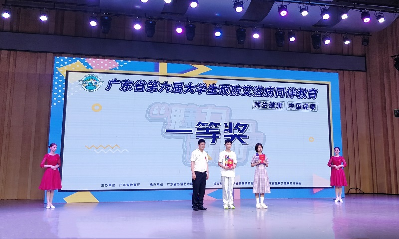 11月21日下午,由广东省教育厅主办的第六届大学生预防艾滋病同伴教育“魅力讲师”大赛决赛在广东外语艺术职业学院举行,Beat3652018级金融学1班黄泽灏同学荣获“魅力讲师”赛一等奖,学生处詹海都、许奕玲荣获优秀指导老师。