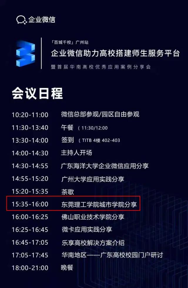 会上,陈显龙主任就企业微信如何与高校的实际场景相结合、企业微信“虚拟校园卡”、企业微信与OA办公系统集成、企业微信通讯录的应用扩展、个性化消息推送、企业微信服务线上教学、疫情期间企业微信线上健康填报和入校审批、来访人员管理、校园通行码、图书馆自助借还等场景进行了技术分享,得到了与会人员的一致好评。