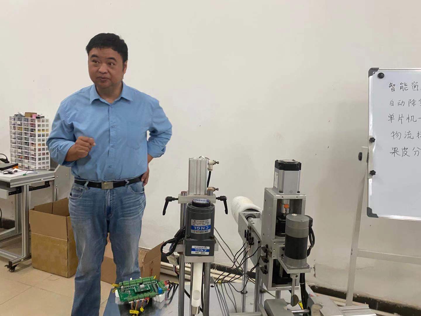 进入智能制造学院的创新中心实验室,映入眼帘的是黑板上密密麻麻、井然有序的字迹——这是张攀峰精心为学生准备的制作项目。当谈及研发柑橘去芯除果肉机内夹具制作方法这个项目的初衷时,他表明,是因为市场有强烈的需求。张攀峰对项目的可行性表示大力地肯定,他认为柑橘去芯除果肉机内夹具制作方法与市场需求契合,并且具有一定的创新性,其中最重要的是符合我国在智能制造领域的需要。