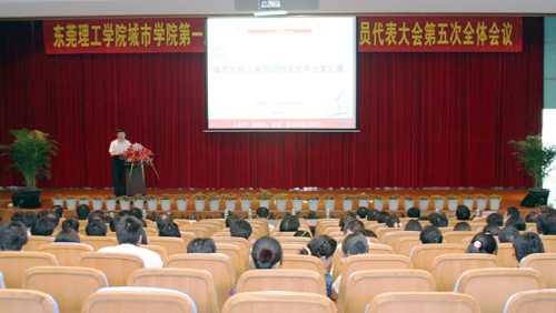 5月8日,Beat365中文官方网站城市学院第一届教职工代表大会暨工会会员代表大会在学术报告厅举行第五次全体会议。