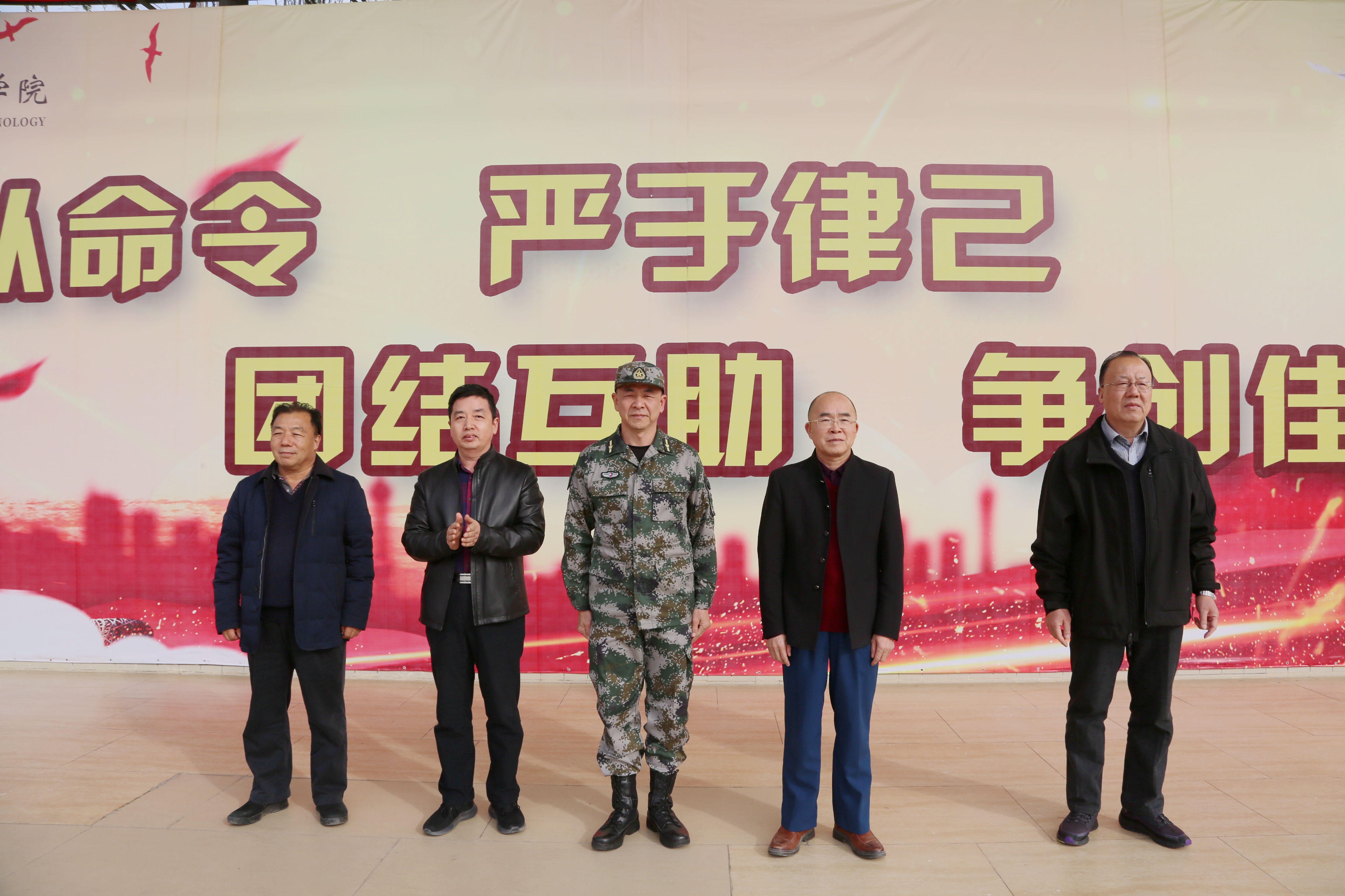 彭亮作动员讲话。他强调,大学生军事训练是国防教育的重要组成部分,加强国防教育、增强大学生国防观念已成为当代青年学子的必修课。全体参训学员要提高认识,端正态度,服从命令听指挥,积极主动投身军训;要吃苦耐劳,刻苦训练,高标准,严要求,发扬军人的优良传统和作风,锻造艰苦奋斗、自强不息的精神品质。