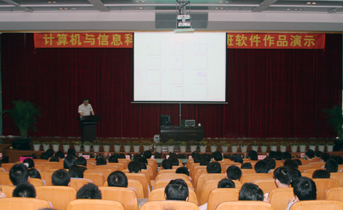 “那个刚才演示海鲜超市软件系统的小伙子,你跟我来……”“愿意与我们斯玛软件有限公司合作的学生,请跟我往这边坐……”,“愿意到我们创实软件有限公司工作的学生,请跟我往左边走……”几位软件公司的老总争先恐后地挑选看中的人。5月13日,我院计算机与信息科学系举办的学生软件作品展示会竟变成了一场别开生面的“现场招聘会”。