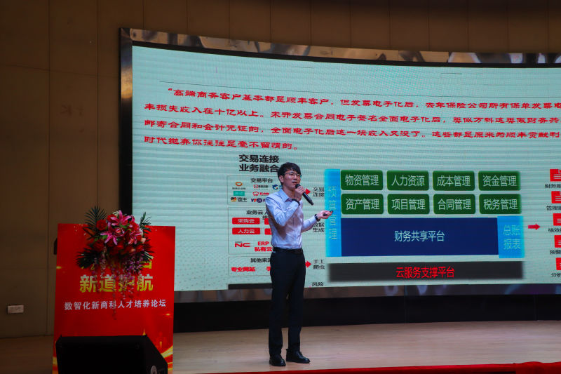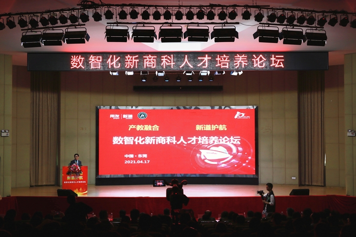 2021年4月17日,由Beat365中文官方网站城市学院、新道科技股份有限公司、用友网络科技股份有限公司联合主办的“数智化新商科人才培养高峰论坛”在Beat365中文官方网站城市学院隆重举行。教育部会计教指委副主任委员、中央财经大学袁淳教授,教育部金融教指委委员、职业教育财经商贸类专业目录研制组组长杨宜教授,教育部会计教指委委员、中山大学谭劲松教授等来自全国86所高校300多名专家学者和教师齐聚一堂,共商数字化和智能化时代新商科人才的培养。