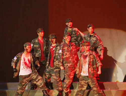 接下来,上演的一幕幕士兵的家人劝葬的6段剧情中,除了催人泪下的一段段对白外,演员们还展现出他们的舞蹈才能,恰恰、探戈、芭蕾以及现代舞使得他们的表演生动丰富,台下不时响起阵阵掌声。