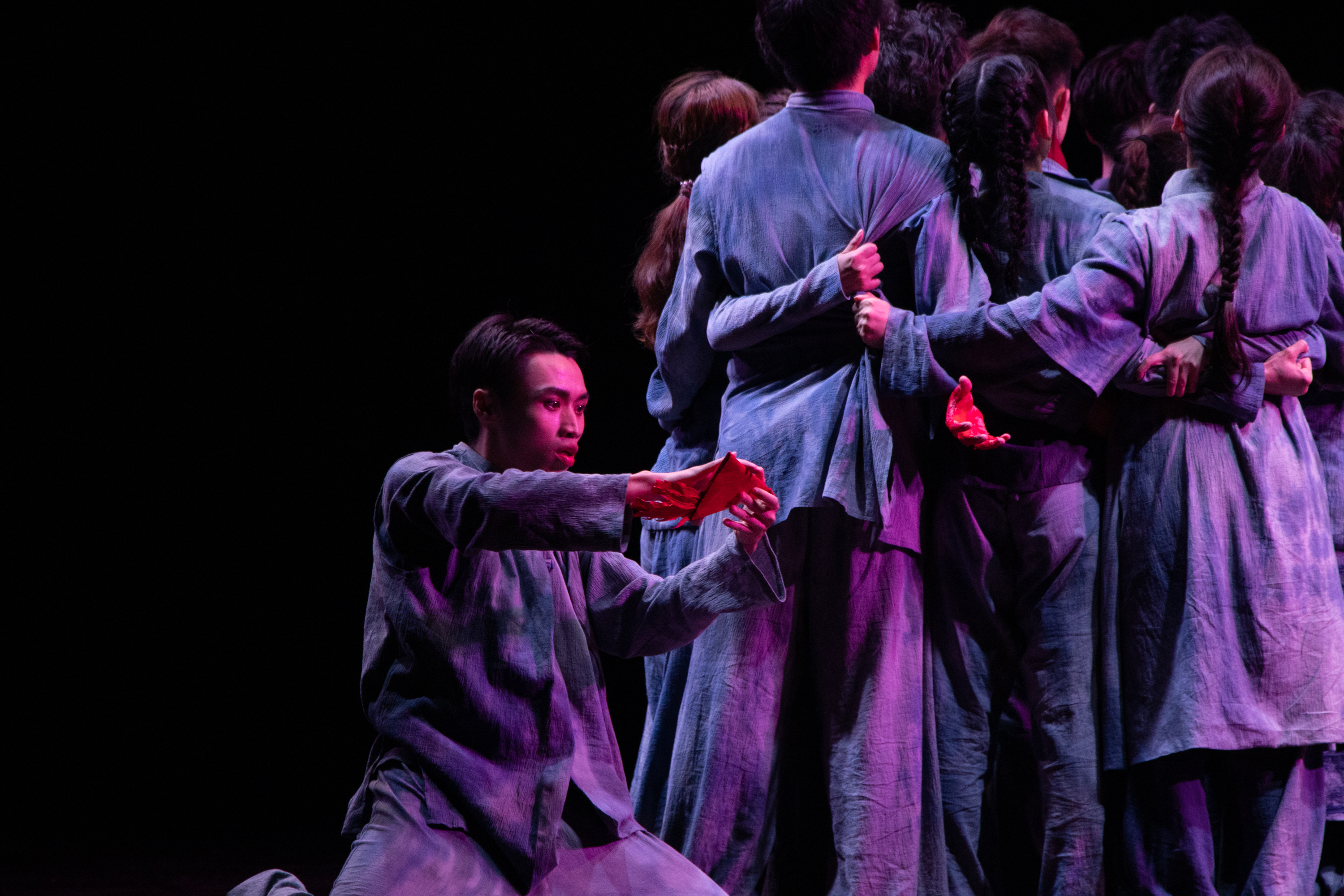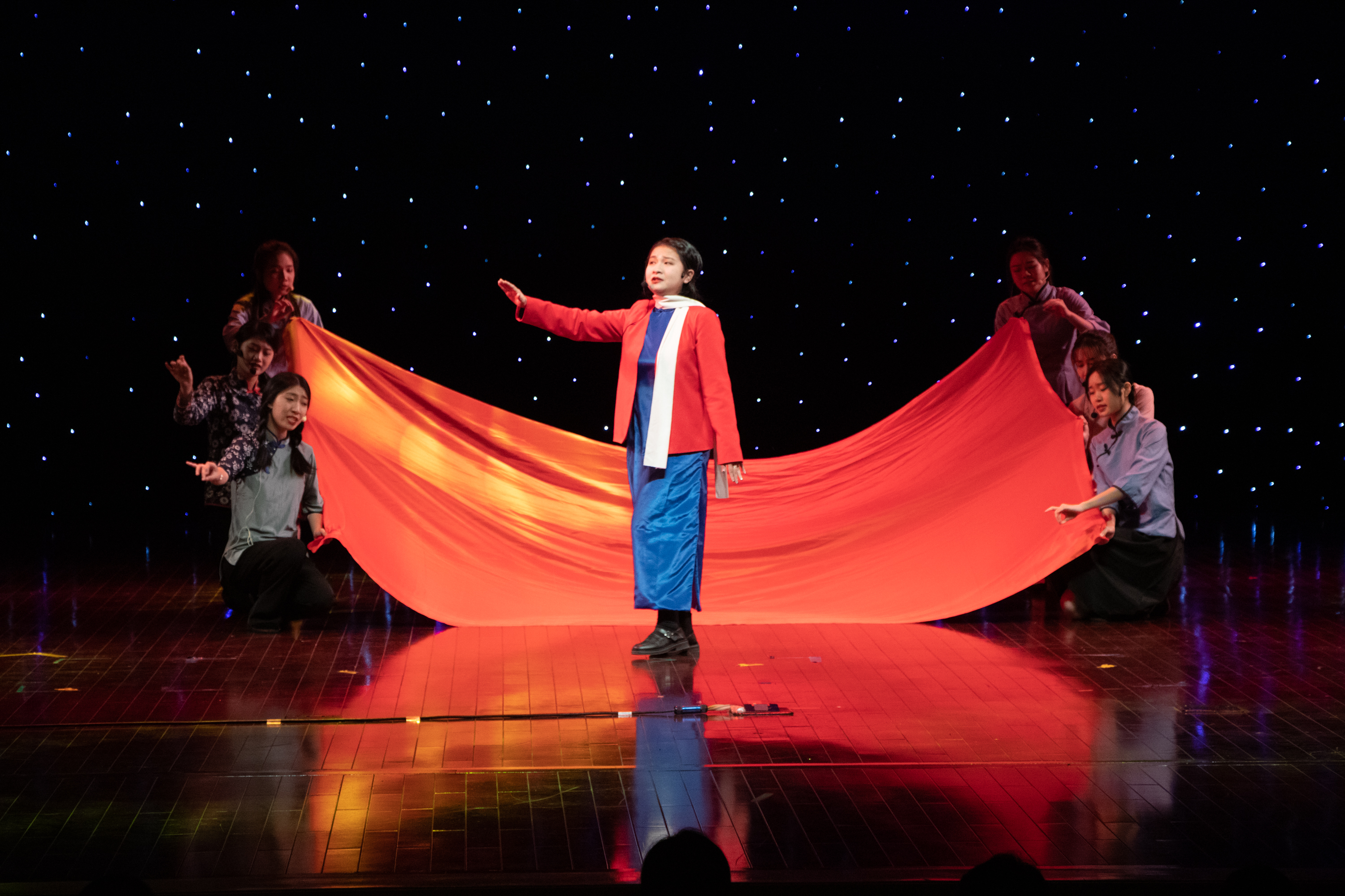 曾子麟等同学带来的朗诵作品《永不回头》,用激昂的语言,有力的回绝,一步一步视死如归的精神,让观看者产生强大的震撼。该作品曾荣获广东省大学生艺术展演朗诵组二等奖。