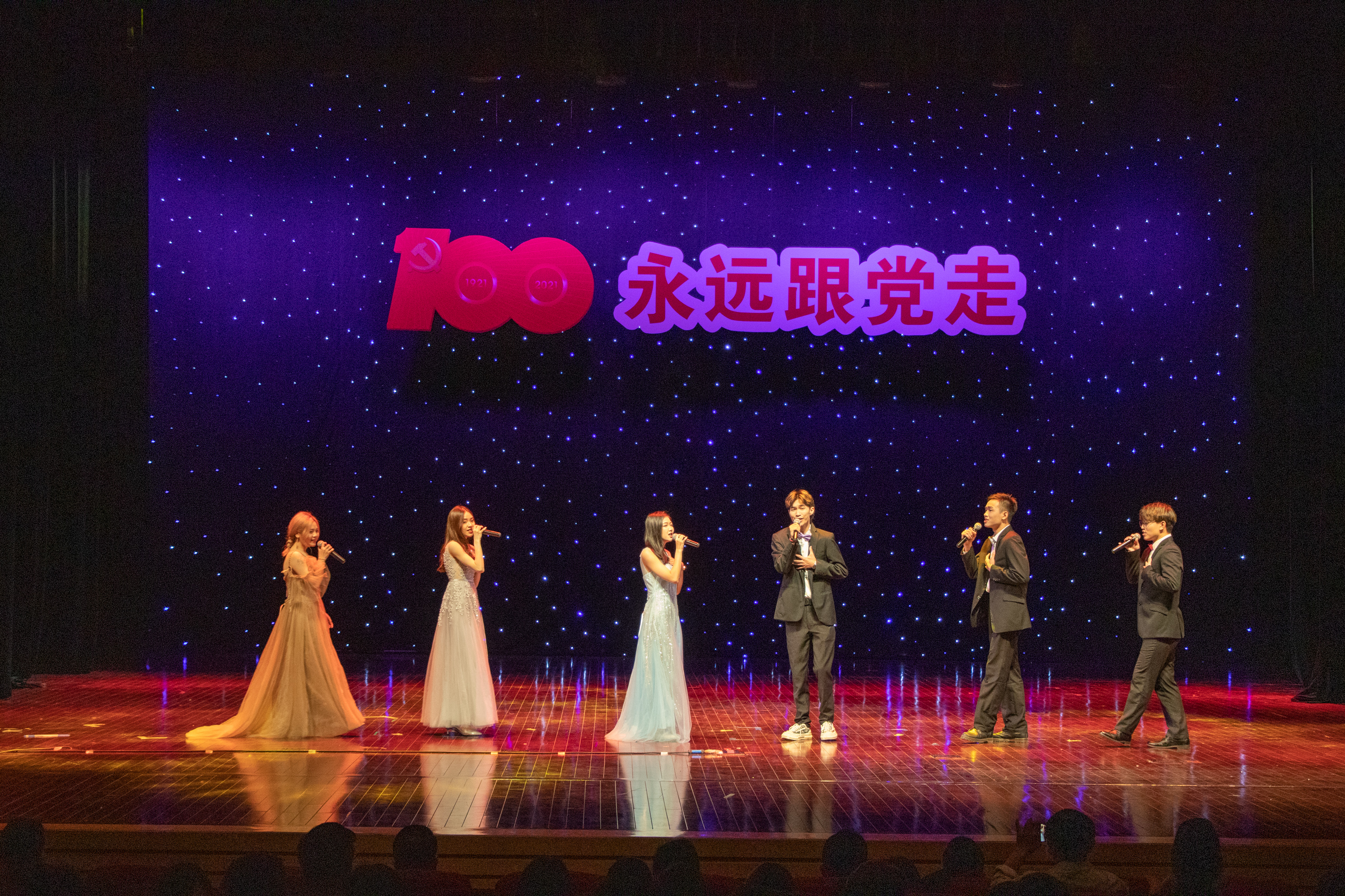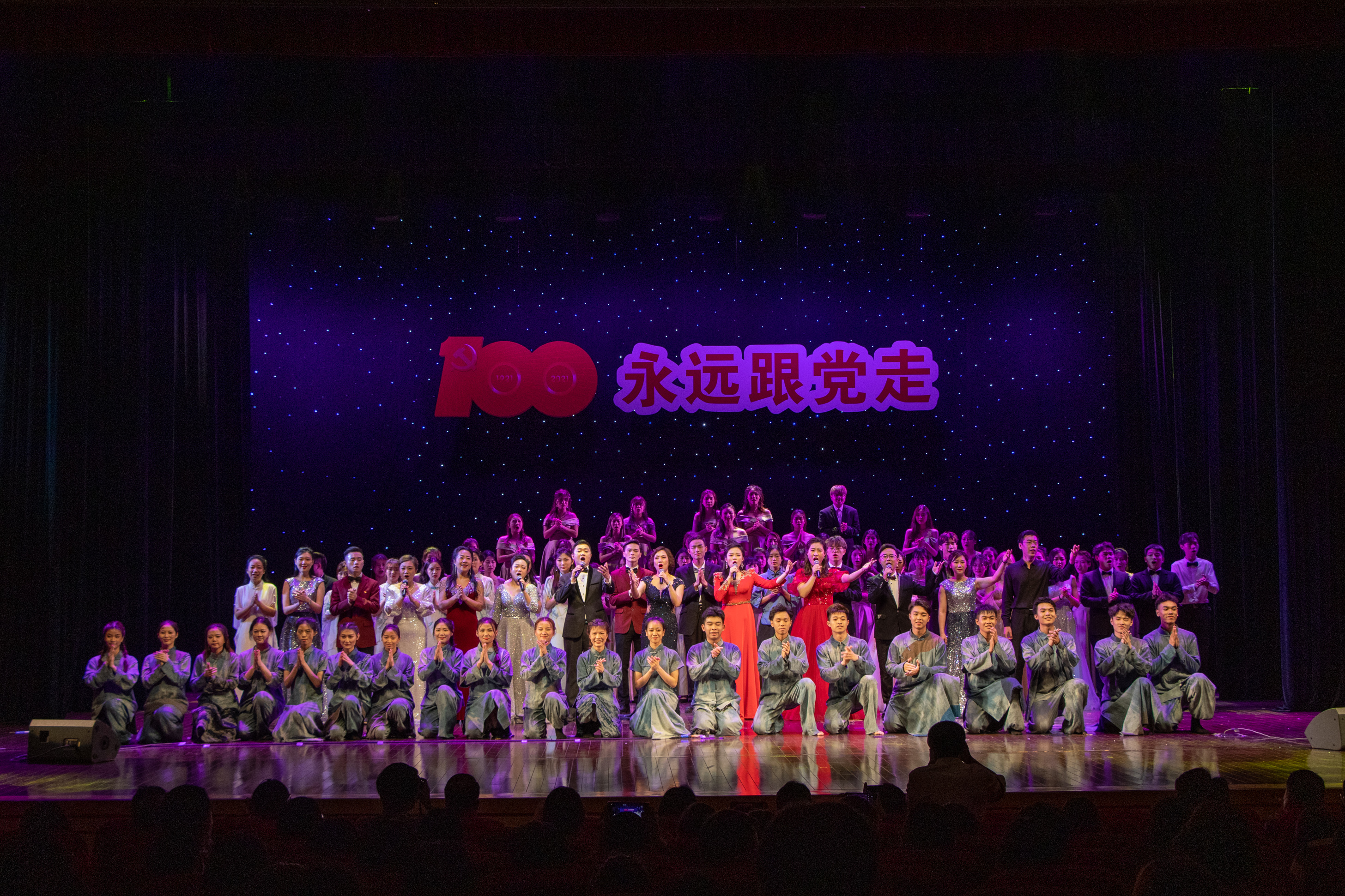 艺术学院一直秉承着教学与实践相结合的形式,院领导和专业负责人不断尝试走出教室,走上舞台,通过舞台实践来缩短课堂与舞台之间的距离,提高学生的综合素质,向社会展示教学成果。在建党百年华诞之际,艺术学院师生们用歌声表达对党的祝福,用舞姿跳出对美好生活的向往。通过最经典、最优秀的文艺作品,弘扬主旋律,凝聚正能量,唱出浓浓的爱党情、爱国情,向建党百年献礼。