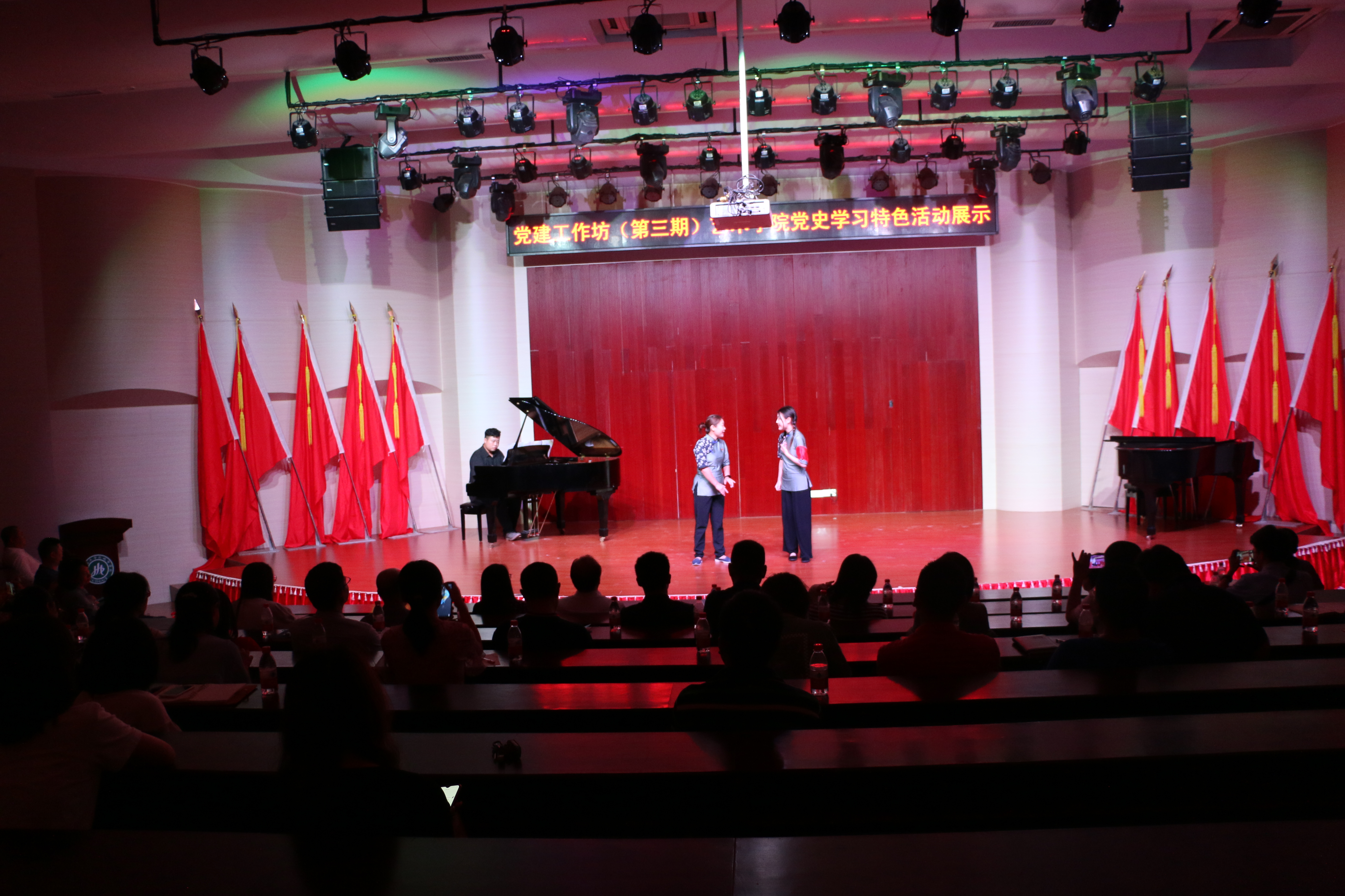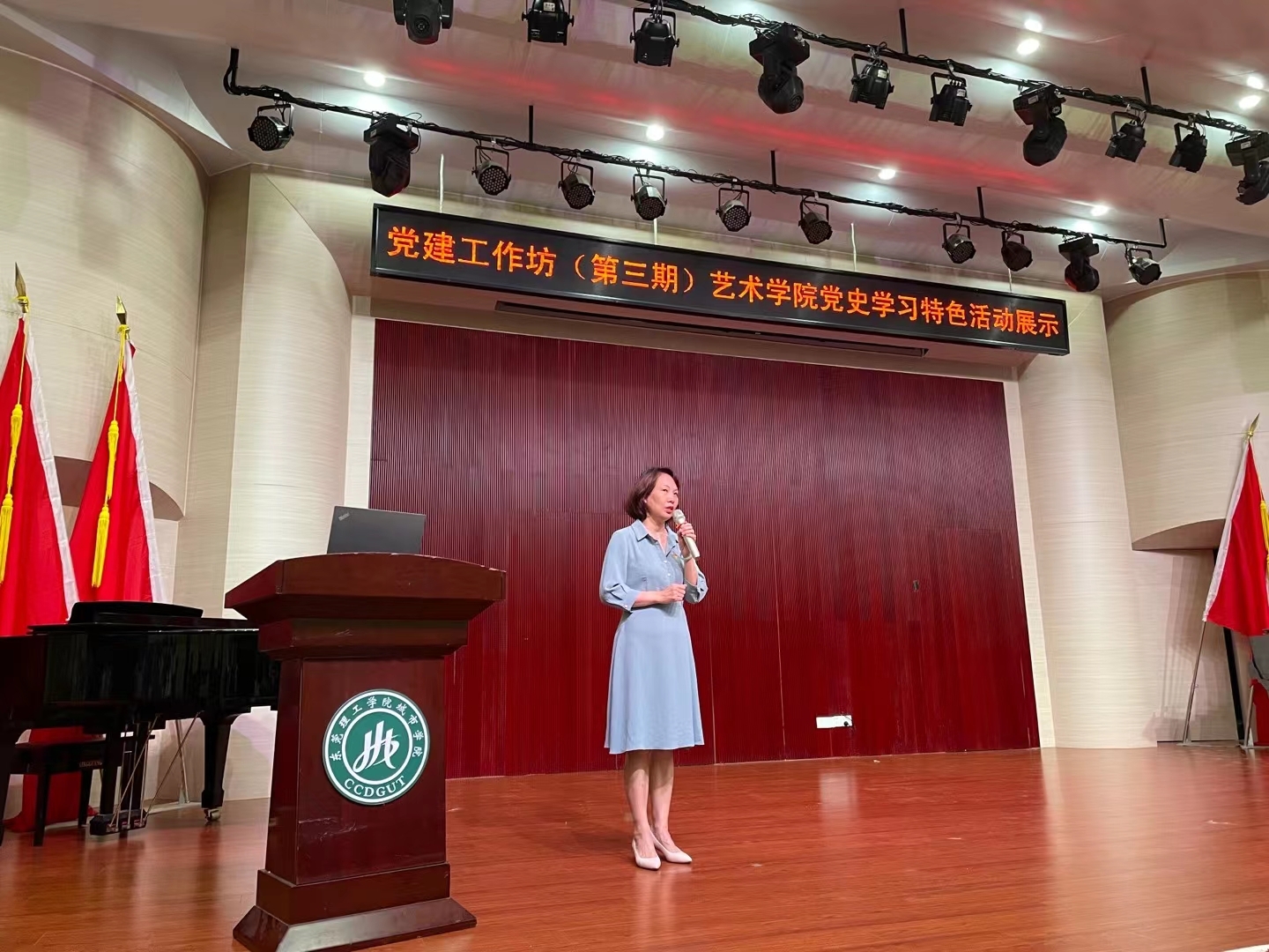 在“党建工作坊”上,艺术学院党总支书记书记康慧丽作了特色党史学习活动汇报。在党史学习教育开展以来,艺术学院党总支紧密结合自身专业特色,通过将党的红歌知识融入思政第一课,在专业学习中组织学生进行红色文艺作品的编排与演练,与东城剧院合作上演“献礼建党百年”大型文艺晚会,师生下到百姓社区开展党史类文艺作品的演出等多种专业与党史学习相结合的形式,受到社会各界的高度赞誉。