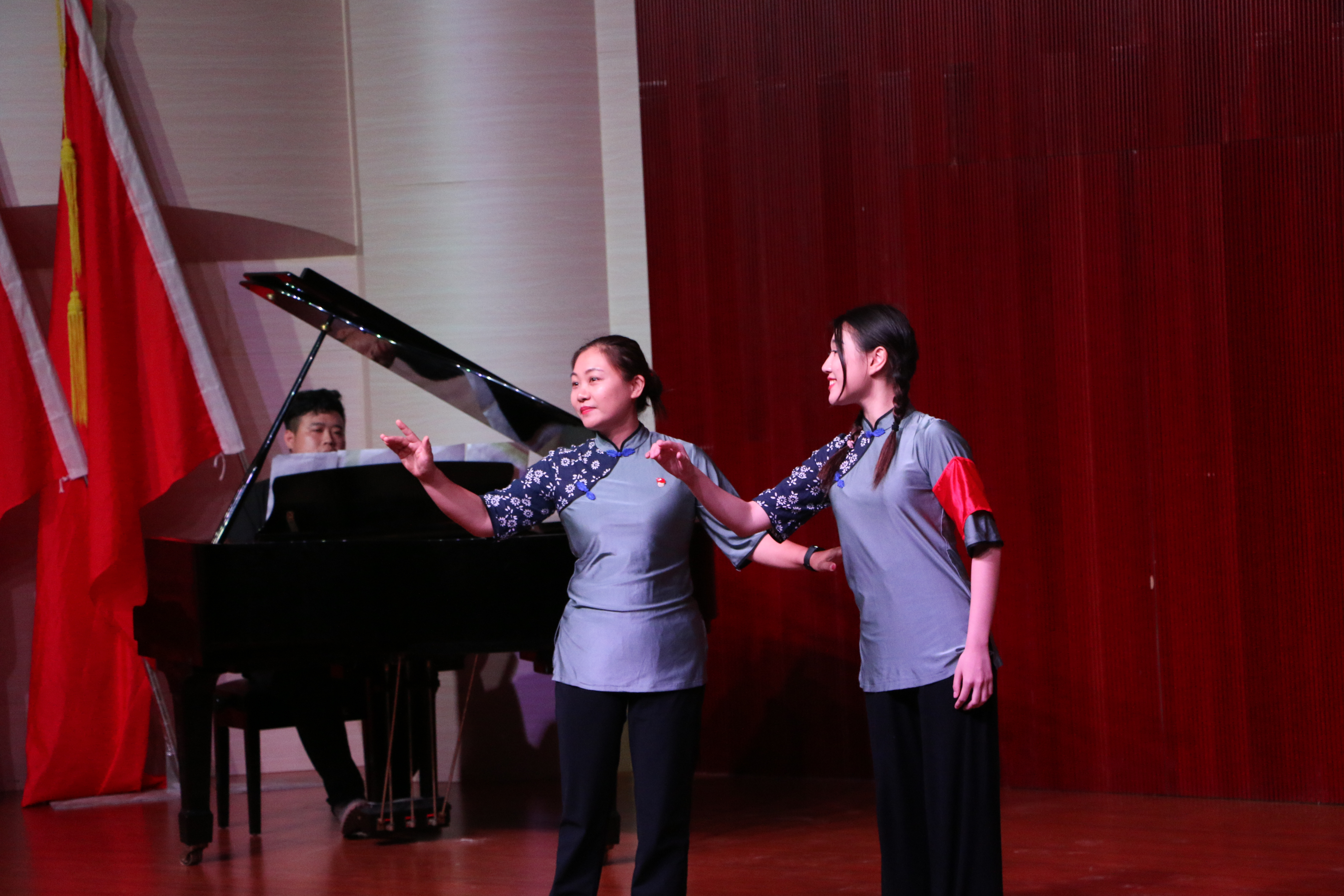 徐婷婷老师和学生演奏的钢琴协奏曲《黄河》改编自经典作品《黄河大合唱》,该作品以壮阔的历史背景和磅礴的恢宏气势,表现出黄河儿女的英雄气概,激励全国人民团结一致,共同抗日,现场震撼人心。情景剧节目《绣红旗》选自著名歌剧《江姐》,由18表演班的同学表演了江姐在狱中组织大家一针一线绣红旗,直到英勇就义的片段,让人泪目。舞蹈《鸡毛信》紧紧围绕“送鸡毛信”的事件而展开,反映了革命群众对党的忠贞和坚定信念,通过优美而又凄楚的舞蹈肢体动作,将伟大的革命故事跃然台上,予以了观众深深的心灵震撼。陈煜丽老师和学生演唱的歌剧片段《洪湖水,浪打浪》,则表现了韩英为代表的赤卫队员在湖上的生活,让在座党员们感受到老一辈无产阶级革命家为革命抛头颅,洒热血的革命情怀,体会今天的幸福生活来之不易。作品获得了现场观众的强烈共鸣和热烈掌声。
