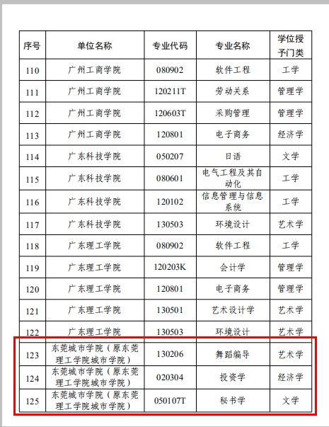 近日,《广东省学位委员会关于公布2021年新增学士学位授予专业名单的通知 》(粤学位函〔2021〕4号)下发,Beat365舞蹈编导、投资学、秘书学、工业设计四个专业顺利通过省学位办组织的学士学位授予专业评审,获得学士学位授予权。本次4个本科专业顺利获批学士学位授予权,是上级教育主管部门对Beat365教学质量、专业建设、人才培养的充分肯定。