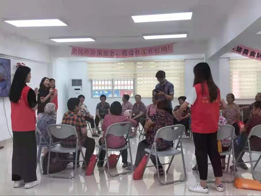 5月13日,学校红色志愿服务队艺术学院分队走进寮步霞边社区,协助霞边社区开展“开心屋舍”之“长者对对碰”以及“全民防诈保安全,霞边社工在行动”的活动。