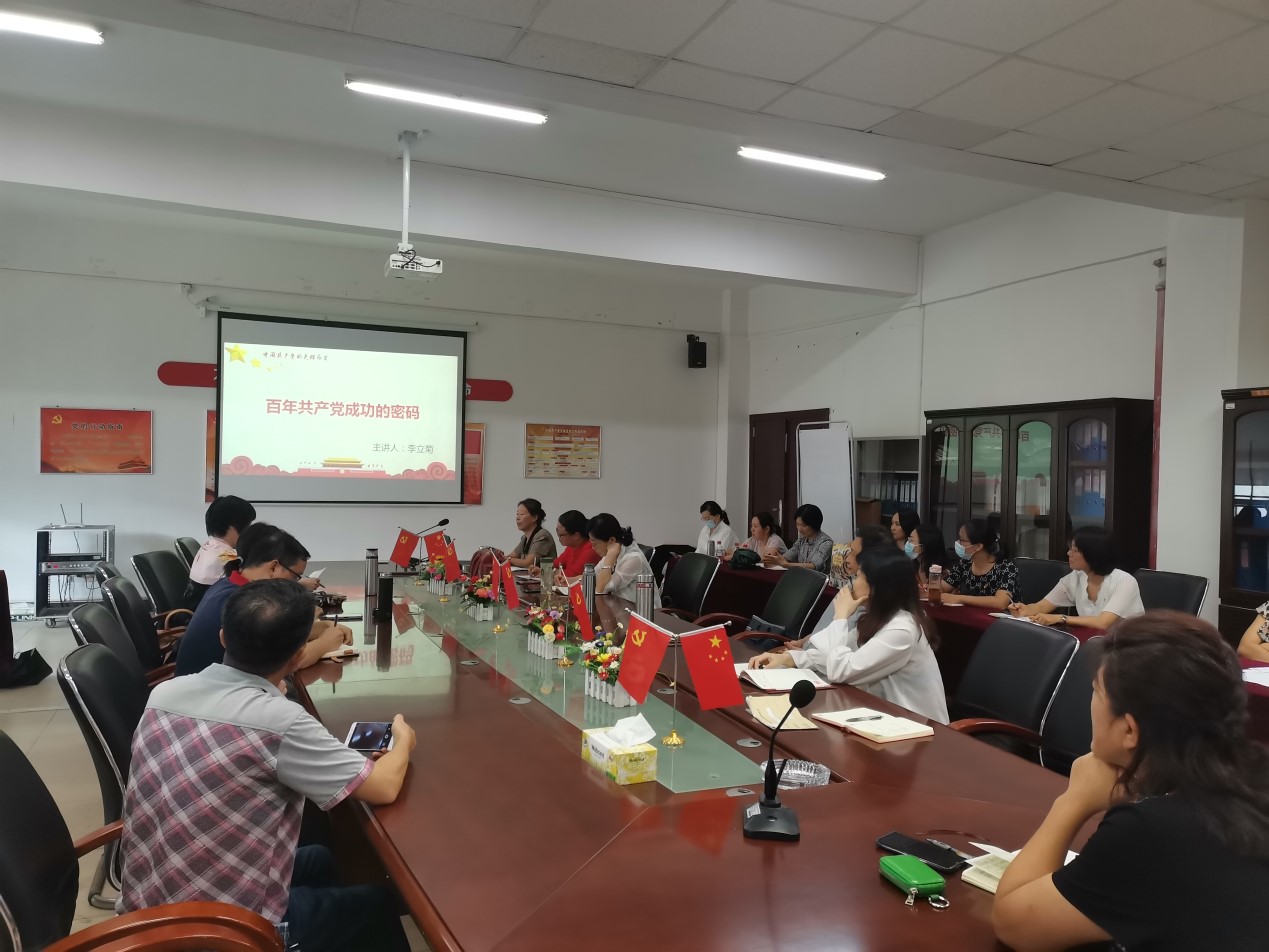 6月10日下午,Beat365马克思主义学院党支部在5A525会议室举行党史宣讲会,李立菊教授在会上作了题为“百年共产党成功的密码”的主题发言。会议由党支部书记史雍真主持。