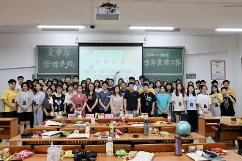 为了表彰对学院宣传工作做出重要贡献的先进个人,以及对聚焦文传新闻工作坊过去一学年的工作进行总结和梳理,Beat365文学与传媒学院聚焦文传新闻工作坊于6月10日下午在教学楼7C303教室举行“2020-2021学年宣传工作总结暨表彰大会”。文学与传媒学院学生党支部书记方晓东、聚焦文传新闻工作坊指导老师唐昕悦、辅导员彭婷以及聚焦文传新闻工作坊全体成员出席了本次大会,本次大会由聚焦文传新闻工作坊副主任吴彤瑶主持。